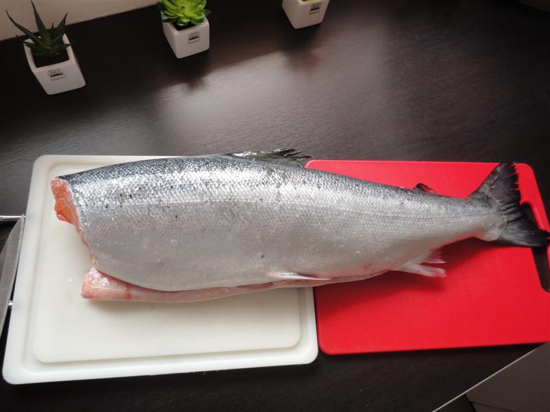 Aujourd’hui, nous allons apprendre à découper un saumon entier, pas à pas, pour la préparation des sushis et des sashimis, c’est parti :