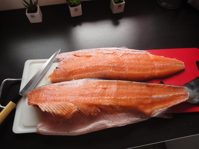 - Le saumon est un poisson gras, pensez à essuyer régulièrement votre planche à découper et même votre poisson, sinon ça glisse.